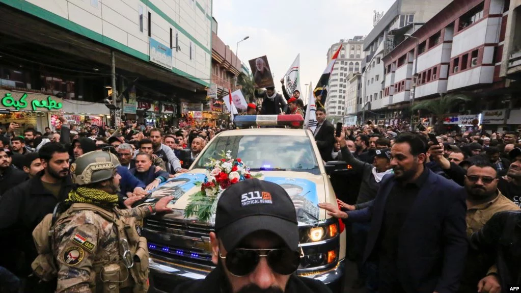 Тысячи людей собрались в субботу для участия в погребальной процессии, которая прошла в Багдаде в память о высокопоставленном иранском генерале и командире иракских боевиков, убитых в результате американского авианалета – пишет Голос Америки.