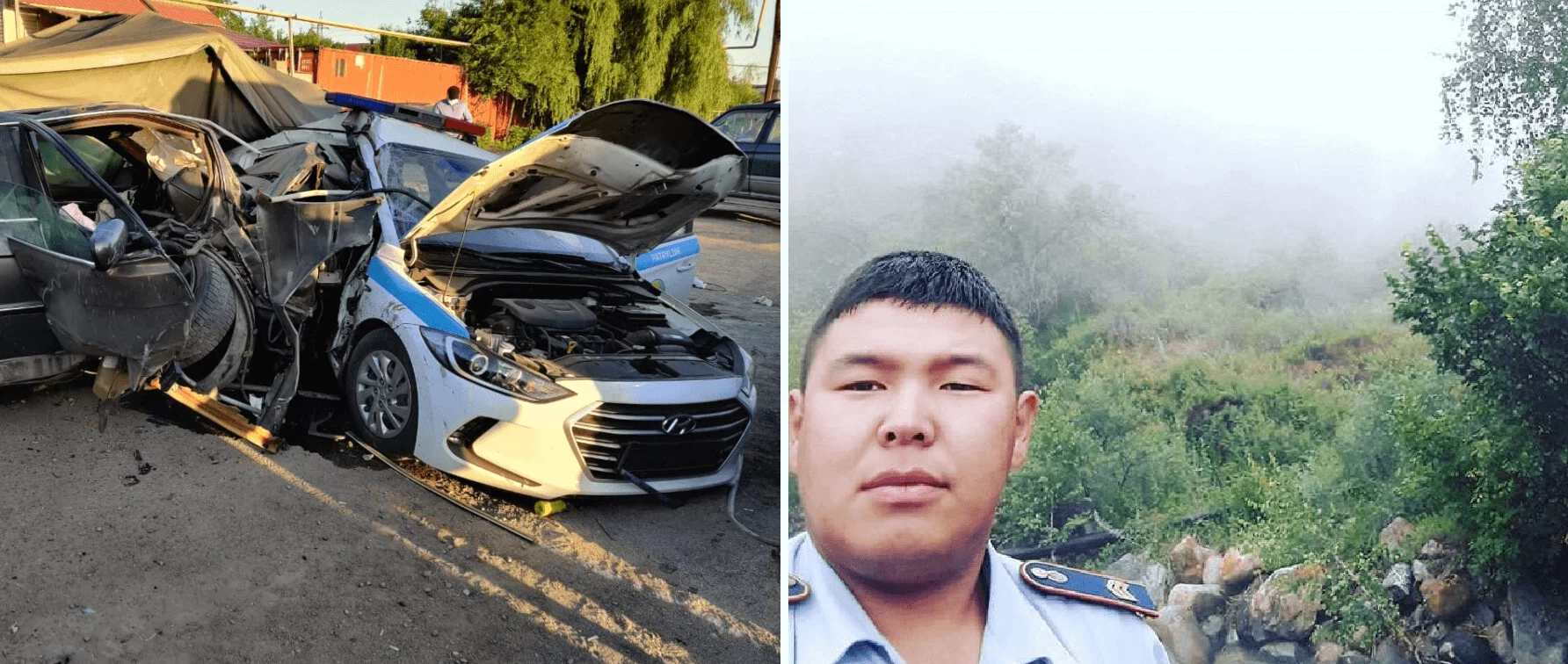 В результате аварии 42-летний патрульный Жалгас Жангазиев от полученных травм скончался до приезда “скорой помощи”. Его коллега – Дастан Абдыканов, 1994 года рождения, в крайне тяжелом состоянии был доставлен в ближайшую больницу города, где умер спустя несколько часов.