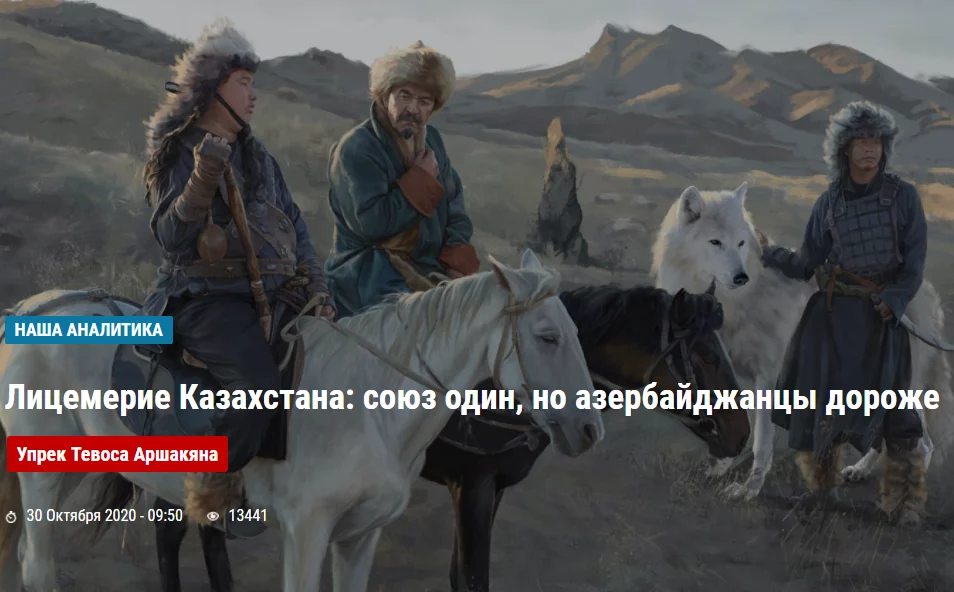Так, в материале «Лицемерие Казахстана: союз один, но азербайджанцы дороже», опубликованной 30 октября на сайте Armenian Report, казахов попрекнули в том, что мы забыли о «своих прямых обязательствах» перед Арменией, вспомнили Мирзояна, который пытался «перевоспитать жителей степной республики» и завершили на патетической ноте «стоит ли гордым армянам обижаться на казахов?».