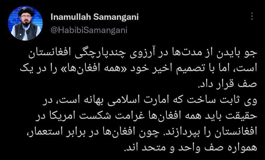 Как пишет заместитель пресс-секретаря Талибана* Инамулла Самангани, решение Джо Байдена сплотило афганцев.