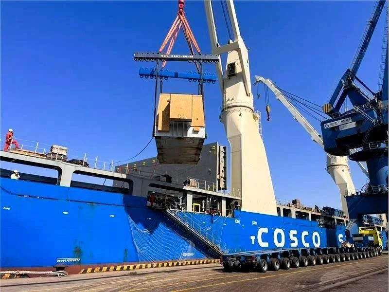 - После прибытия в Китай агрегаты отправились по суше через погранпереход Хоргос до строительной площадки; сухой путь составил около 5300 километров.