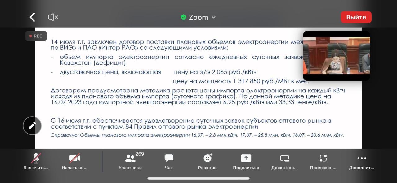 – Данные обстоятельства отражаются при формировании графика необходимого объема производства электрической энергии, основанного на технической возможности наших электрических станций и заявляемых недостающих объемов покупки импортной электроэнергии из энергосистемы РФ. В ходе совещания Министерством энергетики РК повторно доведено до сведения субъектов оптового рынка электроэнергии о необходимости качественного прогнозирования объемов потребления электрической энергии, – утверждает Минэнерго.