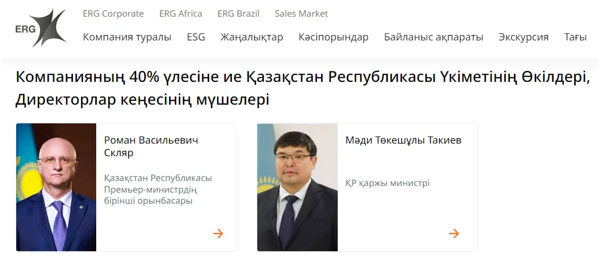 Роман Скляр, курирующий промышленный сектор, и Мади Такиев, возглавляющий минфин, фактически переводят управление долей в ERG в режим оперативного контроля. Это может означать, что правительство намерено более детально вникать в распределение дивидендов и выполнение инвестиционных обязательств группы внутри страны.