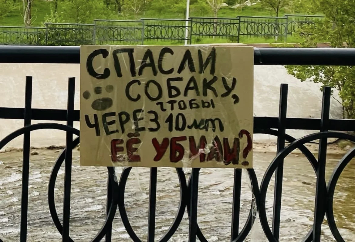 Среди лозунгов были надписи: «Жануарлардың эвтаназиясына қарсымыз» и «Спасли собаку, чтобы через 10 лет её убили?».